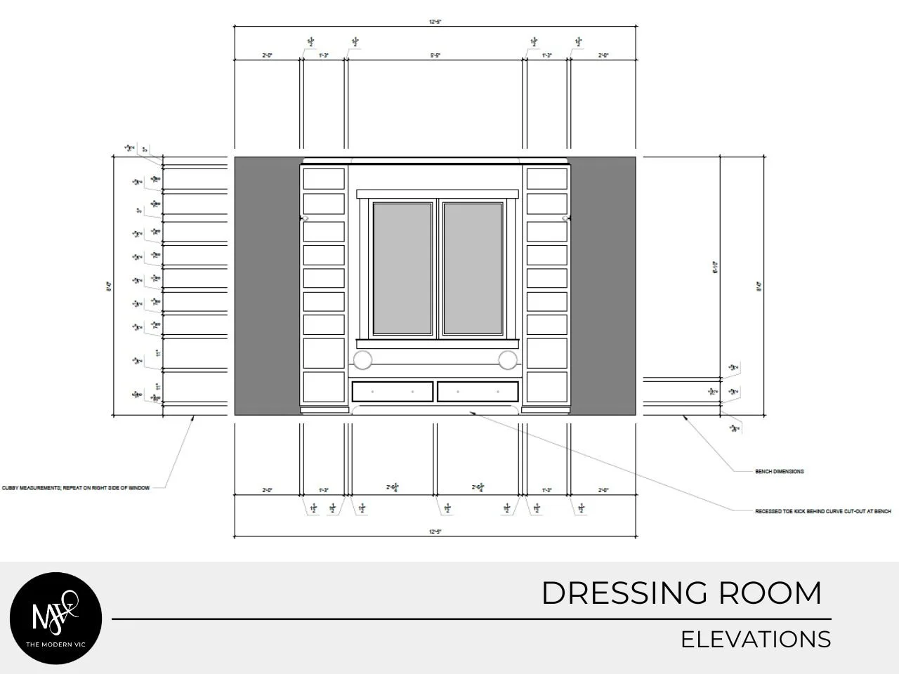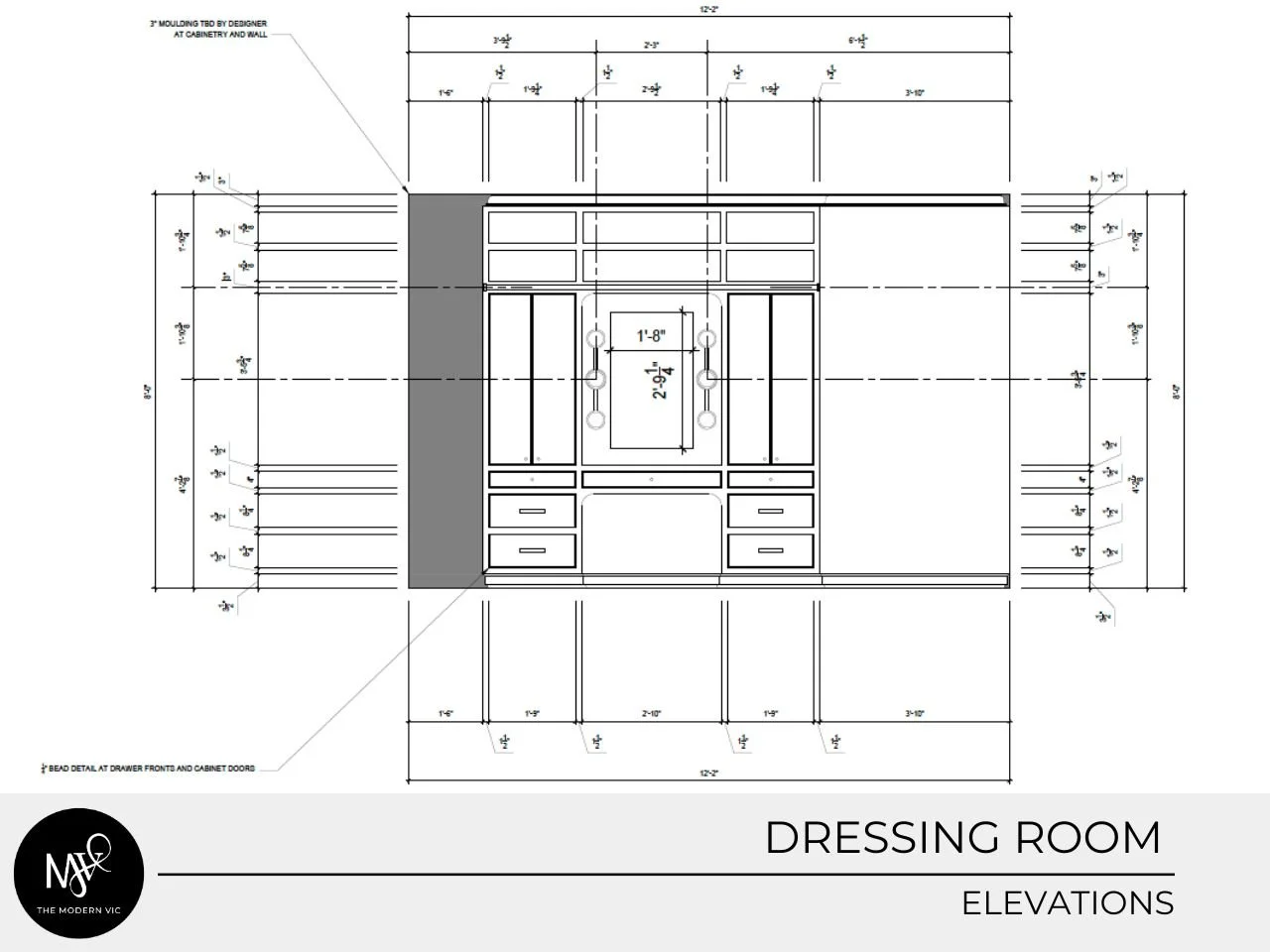 After this careful planning, we got to work on the aesthetic details for this bold room. This kind of planning is essential for closets, dressing rooms and other spaces where the right storage is key–and The Modern Vic is here to help!
